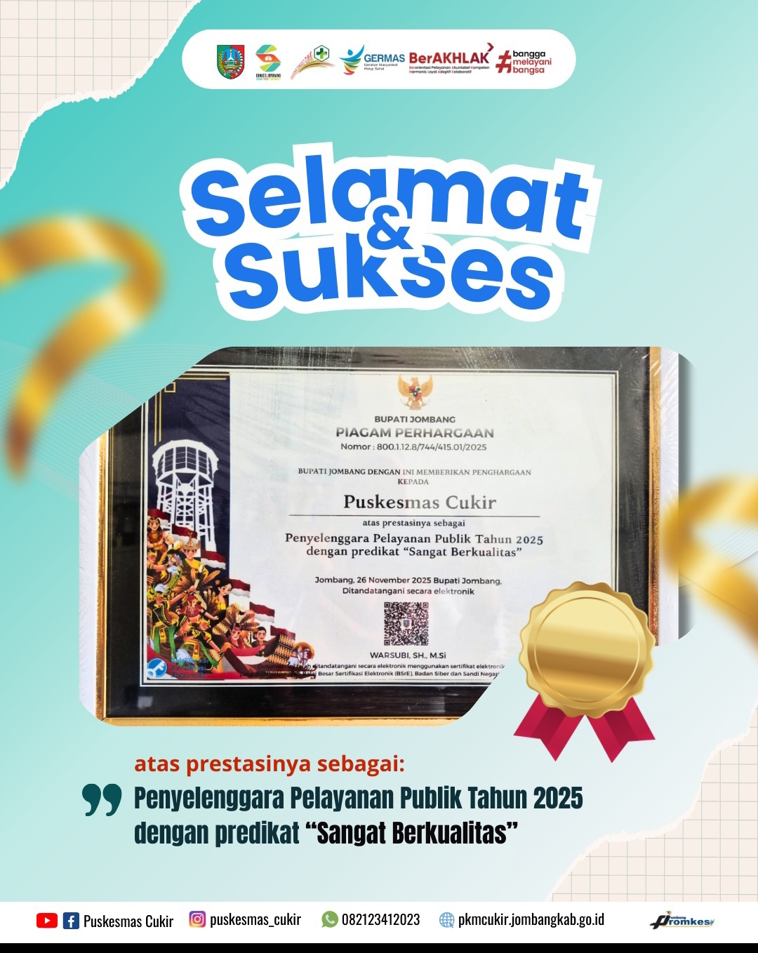Penyelenggara pelayanan publik tahun 2025 dengan predikat " Sangat Berkualitas "
